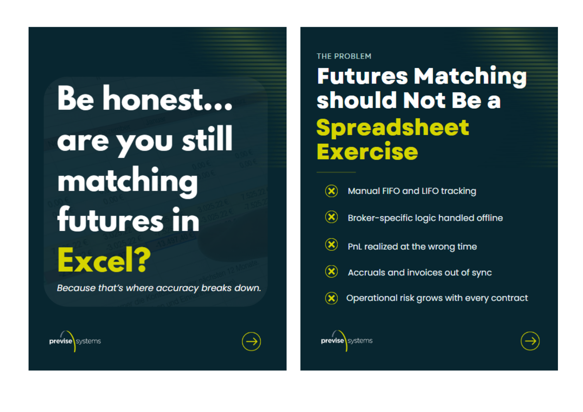 Manual futures matching creates risk that compounds quietly - FIFO and LIFO tracked by hand, broker-specific logic handled offline, accruals out of sync with settlement. Poor matching cascades into inaccurate reporting, delayed clearing, and a PnL trail that nobody fully trusts. And with every new contract added to the book, that exposure grows.