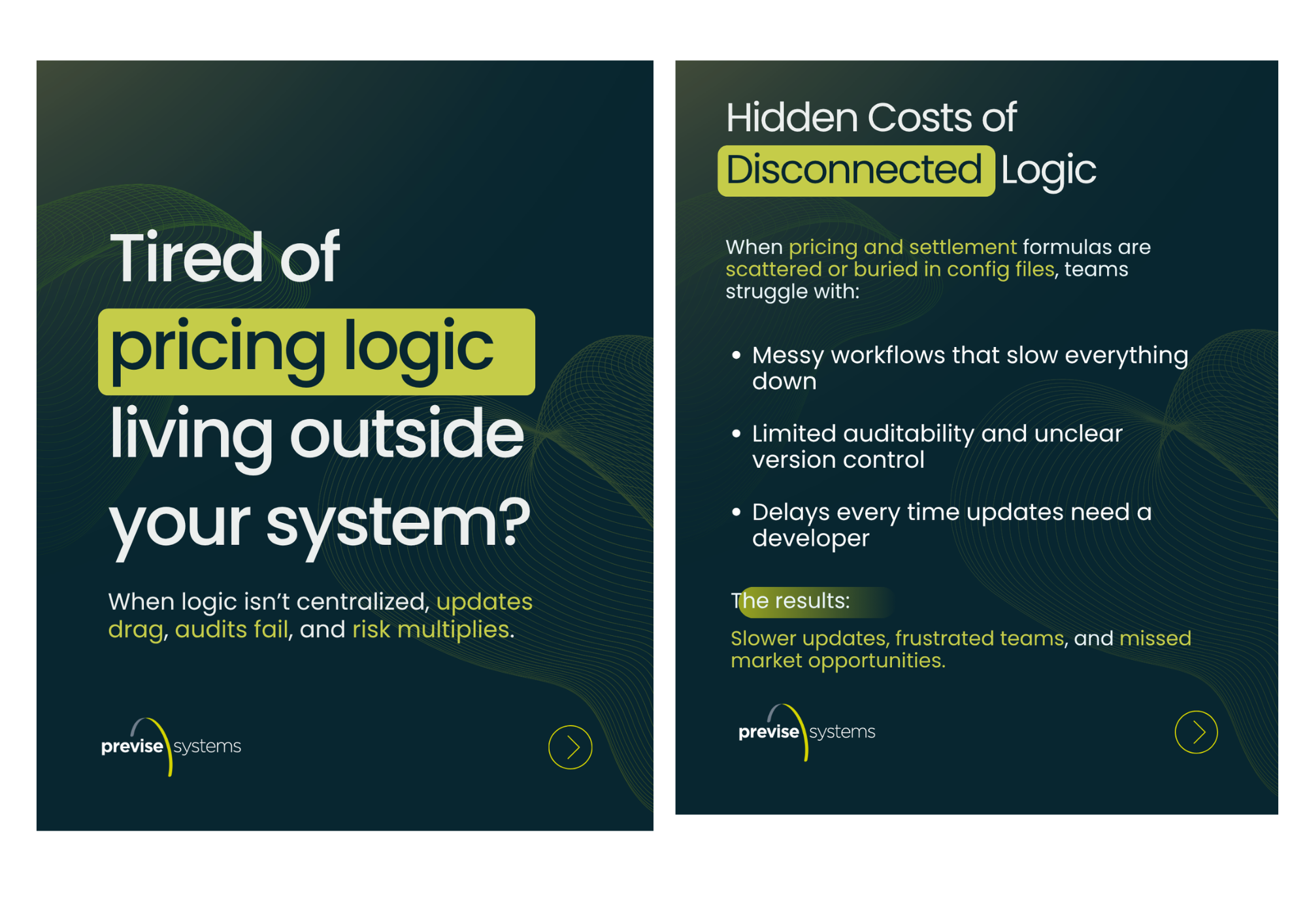 Now, your teams can model complex contract structures, test formulas with live market data, and deploy updates instantly - all without relying on technical resources. The result is pricing logic that’s transparent, flexible, and fully embedded in your workflow, helping your business scale with confidence and agility.